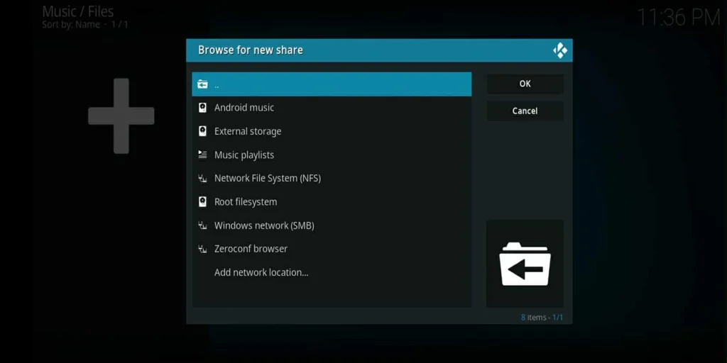 Now, you need to browse for the file that you would like to add to the media source you created. After locating the desired file, save it and go back to the main menu or reload Kodi.